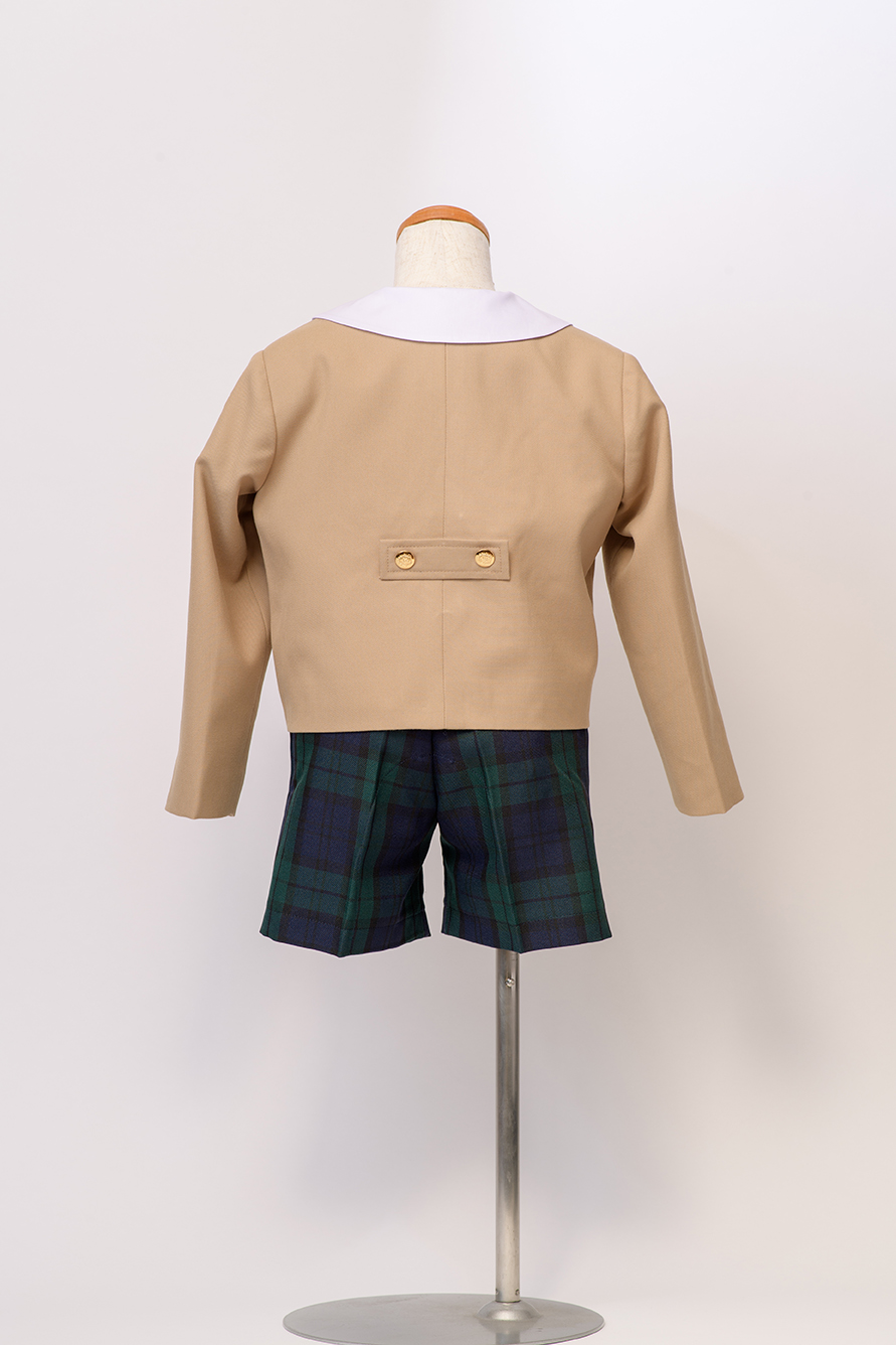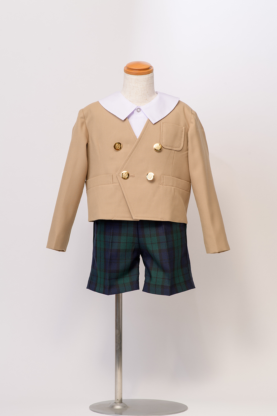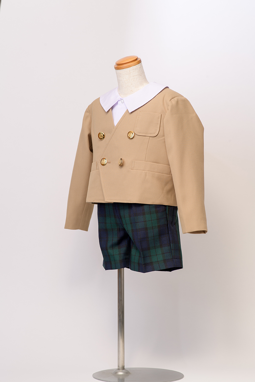 半ズボンは、グリーンチェック柄でしっかりとした生地。ポリエステル100%なので、洗濯時の痛みも気になりません。