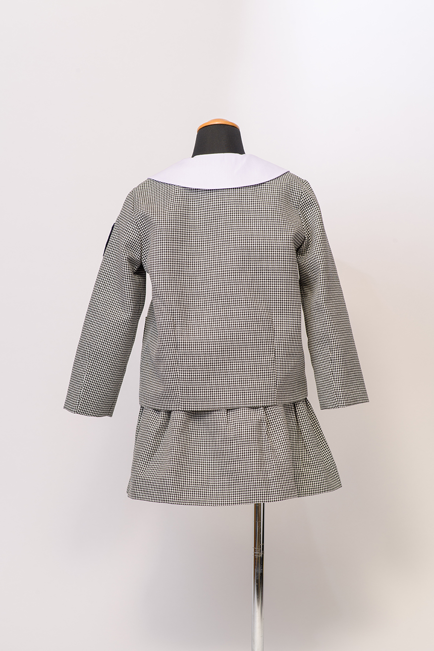 生地色がグレーベースの千鳥格子柄ジャケット、スカート/半ズボンの組み合わせ。さわやかな印象を与える制服セットです。ご要望によりワッペンなどを付けることや、ブラウスなどとの組み合わせをご提案することも可能です。