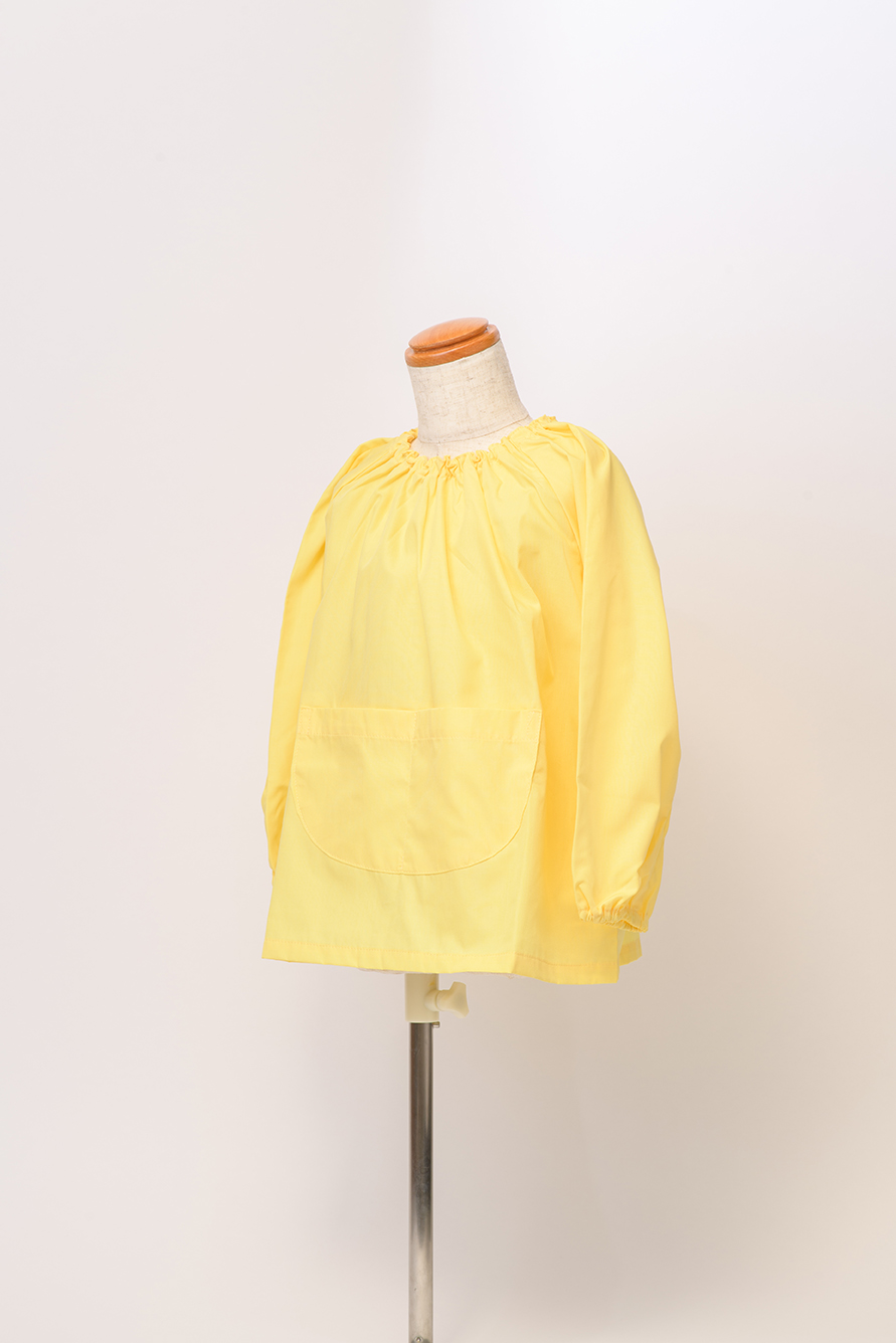 園生活に寄り添う、活発なお子様たちと親御さまにも嬉しいフロントポケットタイプのスモッグ。繰り返し洗濯しても強い生地と、脱ぎ着しやすい生地は、昨今人気のアイテムです。